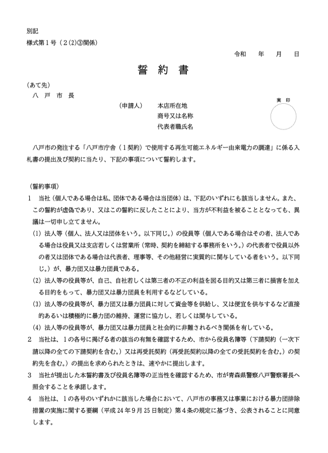 オークションの参加にあたっては、八戸市の競争入札参加資格を要しないものとする。ただし、落札者は、競争入札参加資加登録に必要な書類及び誓約書を契約の締結までに提出するものとする。