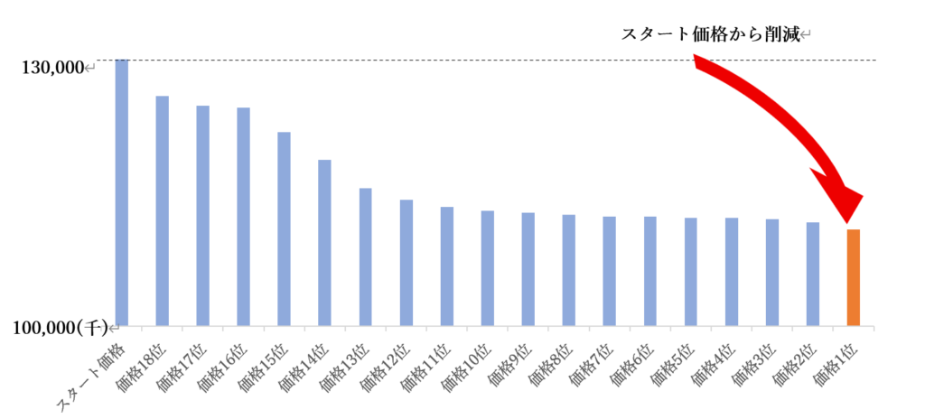(リバースオークション方式とは:「競り下げ方式」と呼ばれる、買い手が売り手をオークション形式で選ぶ調達方式。定められた期間内であれば、リアルタイムで他社の提示する価格を確認しながら、何度でも条件提示を行うことができます。)